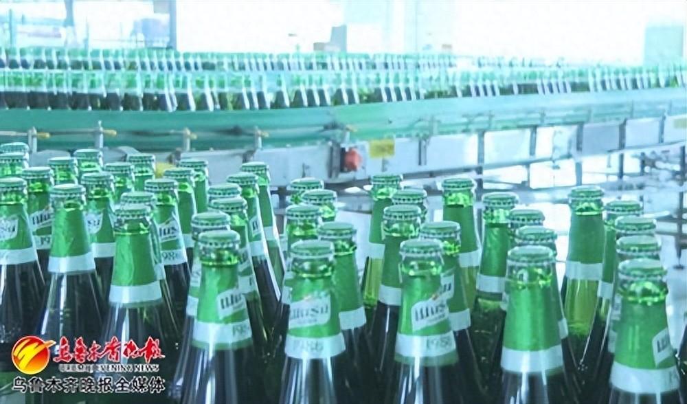 在乌苏啤酒(乌苏)有限公司生产车间,生产线上一瓶瓶“乌苏啤酒1986”经过灌装、装箱、码垛后,陆续发运。受访者供图