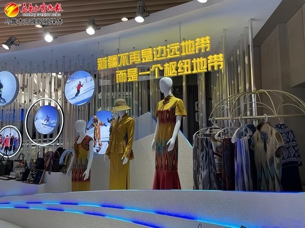 乌鲁木齐丝路霓裳服饰文化有限公司展出了72件艾德莱斯系列服饰作品,将非遗文化与时尚有机结合,散发出浓郁的新疆风情。