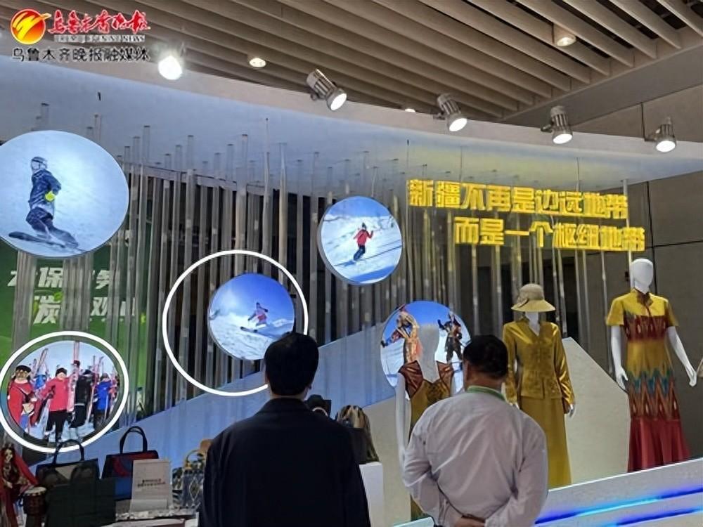 新疆人文交流展台以“多彩新疆 交融绽放”为主题,展示艾德莱斯绸织染技艺、和田玉玉雕、铜器制作技艺、土陶烧制技艺、哈萨克刺绣5个非物质文化遗产项目,宣介新疆冬季旅游、体育赛事、沙漠越野、马术等特色旅游体育项目,表演《玛纳斯》、新疆曲子、长调民歌、花儿等文艺节目,通过拼接式的几何建筑,运用多媒体、VR互动等现代化展陈手段,全方位展现新疆人文之美、非遗之美。