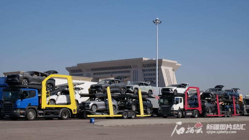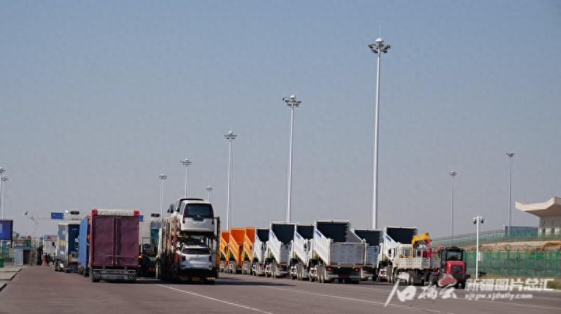 2023年8月,在霍尔果斯公路口岸,商品车以笼车形式有序出口。冯海森 摄