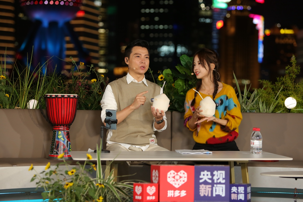 11月5日晚,一场主题为“美好生活拼出来·‘进’享丝路好物”的拼多多百亿补贴专场带货直播在黄浦江畔正式开启。总台主持人任鲁豫、记者王冰冰弹唱完一曲《茉莉花》后化身带货主播,推介来自美国、英国、法国、澳大利亚、智利、阿根廷、韩国、意大利、新西兰、泰国等18个国家的104款精品好物,掀起一轮轮拼单热潮。