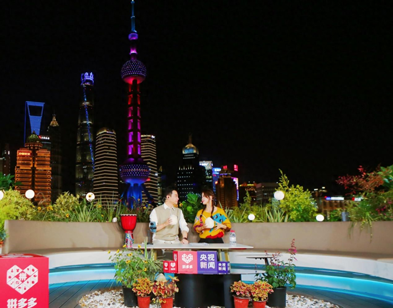 11月5日晚,拼多多把直播间“搬”到了黄浦江畔。 唐超 | 摄
