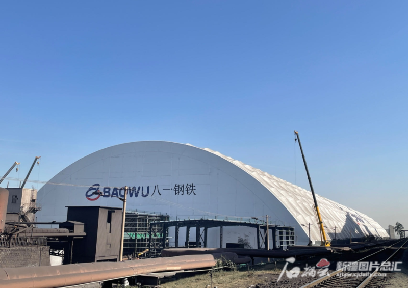 新建成的烧结料场封闭项目是疆内目前最大的用管桁架膜结构建造的棚式全封闭料仓项目,也是八钢今年超低排改造项目中的重点项目之一,可最大限度降低粉尘排放。