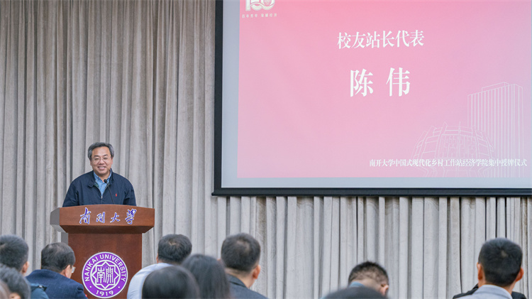 会上,工作站校友站长代表陈伟深情回忆了自己在南开大学经济学院求学的经历,并表示,在中国式现代化建设中,城乡区域发展必须扎根于农村,乡村工作站需要不拘于理论,不限于学生调研,真正形成有价值的成果。他希望能够在经济学科百年之际,深入乡村,为乡村振兴作出自己的贡献。