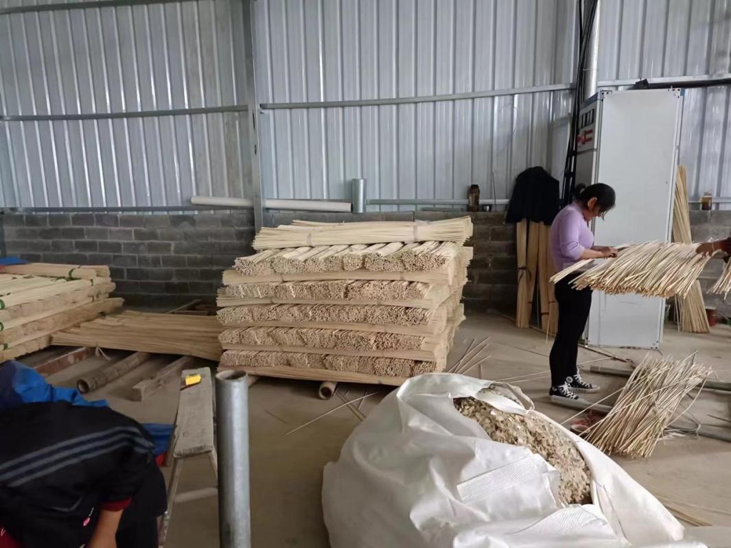 近日,通城县麦市镇天岳村楠竹制品加工厂内,机器轰鸣声渐次响起,工人们正忙着将竹料断料、开片、筛选、拉丝、晾晒。