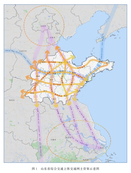(三)规划目标。到2035年,建成能力充分、覆盖广泛、结构合理、便捷顺畅、衔接高效、绿色集约、智能先进、安全可靠的现代化高质量综合立体交通网,形成高效率的“一轴两廊十通道”交通网主骨架,建成以轨道网、公路网为主干,内河水运网为补充,沿海港口群、机场群比较优势充分发挥,综合交通枢纽高效衔接的“三网两群一体系”,有力支撑“123”客运通达网(省会、胶东、鲁南三大经济圈内1小时通达、省内各地2小时通达、全国主要城市3小时通达)和“123”物流网(省内1天送达、国内2天送达、国际主要城市3天送达),山东省作为东北亚乃至“一带一路”的综合交通枢纽作用更加显著。