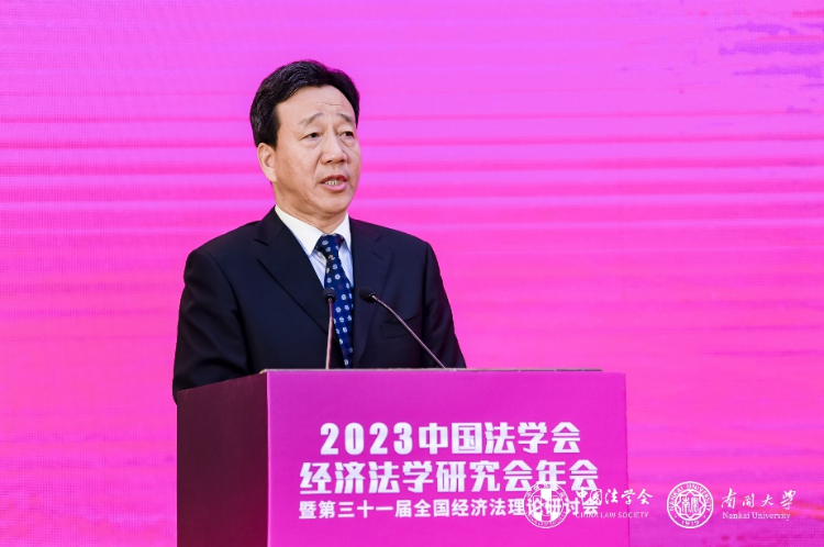 本次会议由中国法学会经济法学研究会主办、南开大学法学院承办。天津市委常委、政法委书记、市法学会会长王庭凯,南开大学党委书记杨庆山,中国法学会经济法学研究会会长、北京大学法学院教授张守文,中国法学会党组成员、副会长张苏军出席4日开幕式并致辞。南开大学法学院负责人主持开幕式。