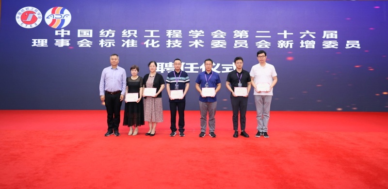 会议举行了中国纺织工程学会第二十六届理事会标准化技术委员会新增委员聘任仪式。由伏广伟理事长为增补委员颁发证书。