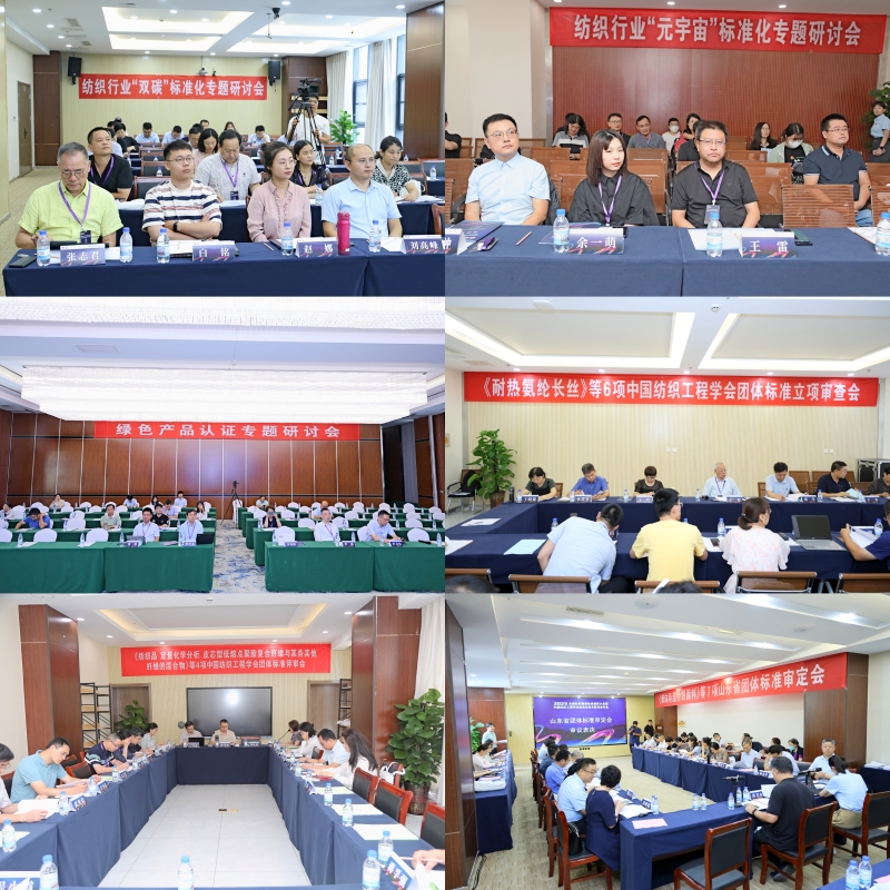 大会举办了纺织行业“双碳”标准化专题研讨会、纺织行业“元宇宙”标准化专题研讨会、绿色产品认证专题研讨会、《纺织品 定量化学分析 皮芯型低熔点聚酯复合纤维与某些其他纤维的混合物》等4项中国纺织工程学会团体标准评审会、《耐热氨纶长丝》等6项中国纺织工程学会团体标准立项审查会、《单向导湿针织面料》等7项山东省团体标准审定会等六个平行分会场会议。