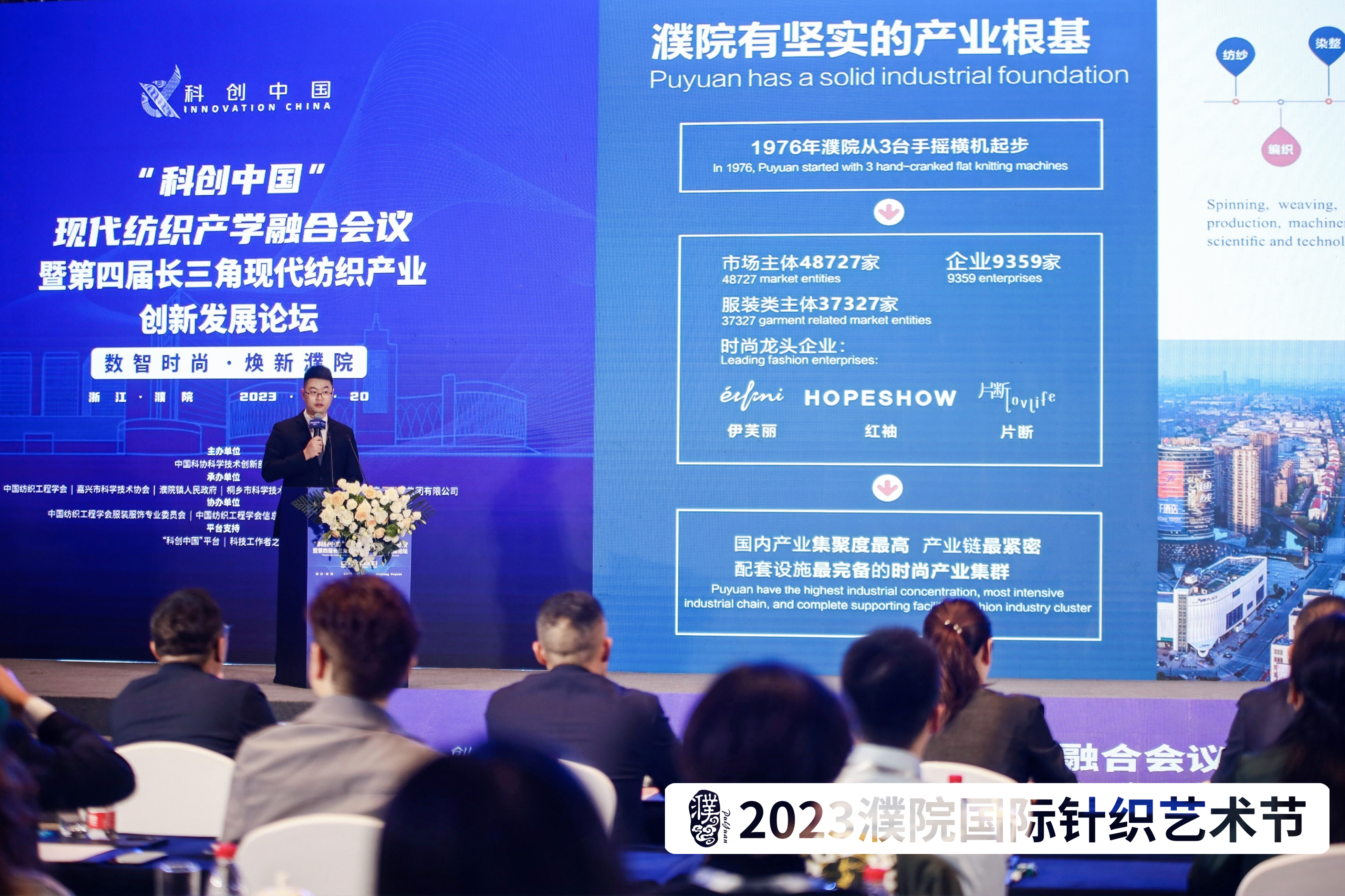 10月20日,由中国科协科学技术创新部主办,中国纺织工程学会、嘉兴市科学技术协会、濮院镇人民政府、桐乡市科学技术协会和桐乡市濮院时尚产业发展集团有限公司共同承办,中国纺织工程学会服装服饰专业委员会、信息专业委员会、浙江省羊毛衫协会协办的“‘科创中国’现代纺织产学融合会议暨第四届长三角现代纺织产业创新发展论坛”在浙江省嘉兴市濮院召开。