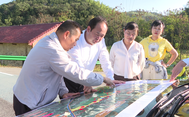 葛军一行实地查看项目试点范围内村湾环境、流域治理、产业发展、农田林地分布等情况,对照项目规划图纸听取相关工作汇报,了解项目推进需要支持的事项,研究分析项目设计规划、土地流转、水利设施改造、高标准农田建设、闲置房屋盘活、农文旅融合发展等,安排部署下一步工作。