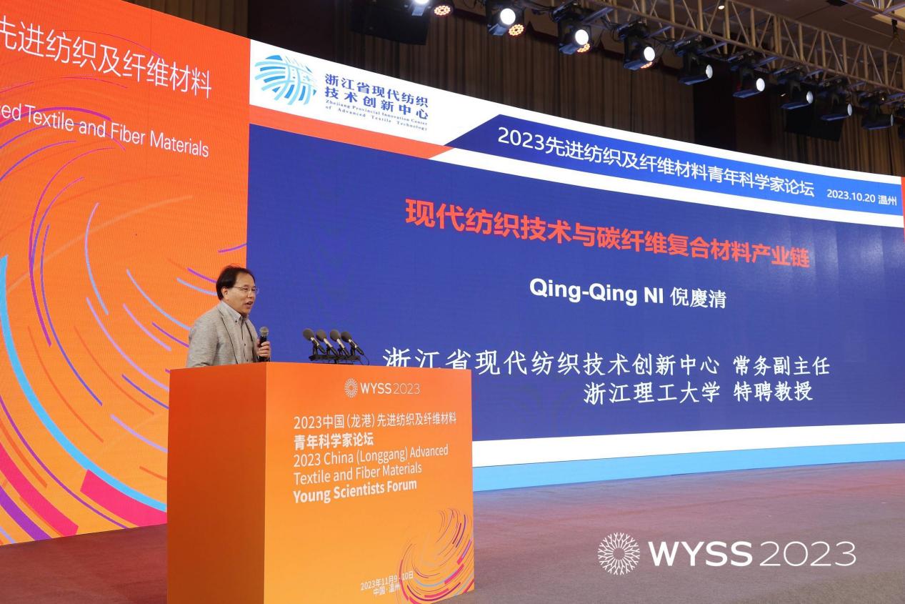 日本工程院院士、浙江理工大学特聘教授、博士生导师,日本国立信州大学名誉教授倪庆清以“现代纺织技术与碳纤维复合材料产业链”为题作报告,围绕现代纺织核心技术攻关及先进纤维材料及其制备技术展开讲解。