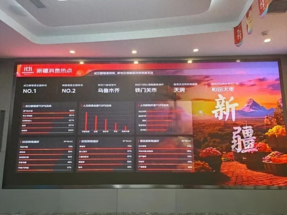 11月11日,在北京京东总部的大数据中心,全国各地的消费数据飞速变化。当画面切换至新疆数据时,显示新疆成交额增速全国第一,销量增速排名全国第二位。
