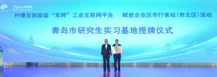 在揭牌环节,青岛市委组织部副部长、市人社局党组书记、局长刘学俊和檬豆网络科技董事长霍胜军共同为青岛市研究生实习基地授牌。基地建设将搭建企业与青年人才求职就业平台,有效吸引青年人才提前了解、适应、融入工业互联网产业发展。青岛市地方金融监督管理局党组成员邹永乐向檬豆网络科技颁发了数字金融赋能中小微企业示范平台。