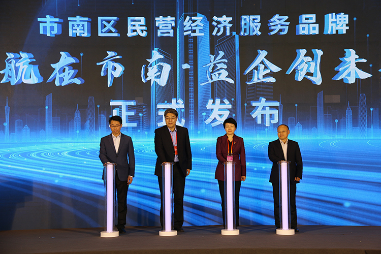 活动中,青岛市民营经济发展局党组成员、副局长江长海,青岛市工商联党组成员、副主席周雪燕,市南区政府党组成员、副区长张军,市南区政协副主席刘树国共同按下“光柱”,发布市南区民营经济服务品牌“企航在市南·益企创未来”。数字人“南南”进行品牌介绍,市南区将围绕“企航在市南·益企创未来”一个品牌,实施“决胜新赛道”“金专铸企”“益企面对面”“企明星计划”“企航计划”“金桥计划”六大主题行动,持续优化企业发展生态,推动市南区民营经济高质量发展。