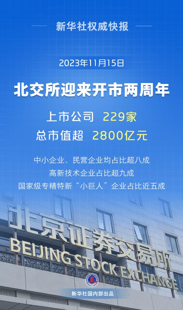 2023年11月15日,北京证券交易所迎来开市两周年。