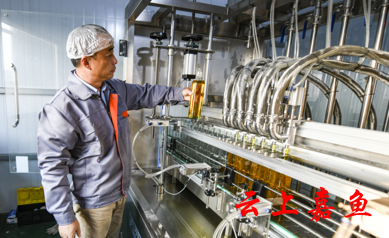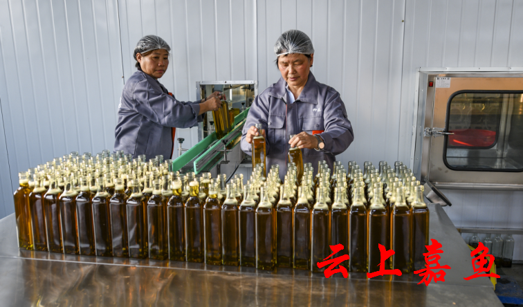 云上嘉鱼报道(全媒体记者雷平)11月11日,湖北种乐园生态农业发展有限公司的灌装生产线上,机器轰鸣,压榨、灌瓶、包装、出厂各个环节,环环相扣,一瓶瓶包装精美的茶油被打包整齐,准备销往全国各地。