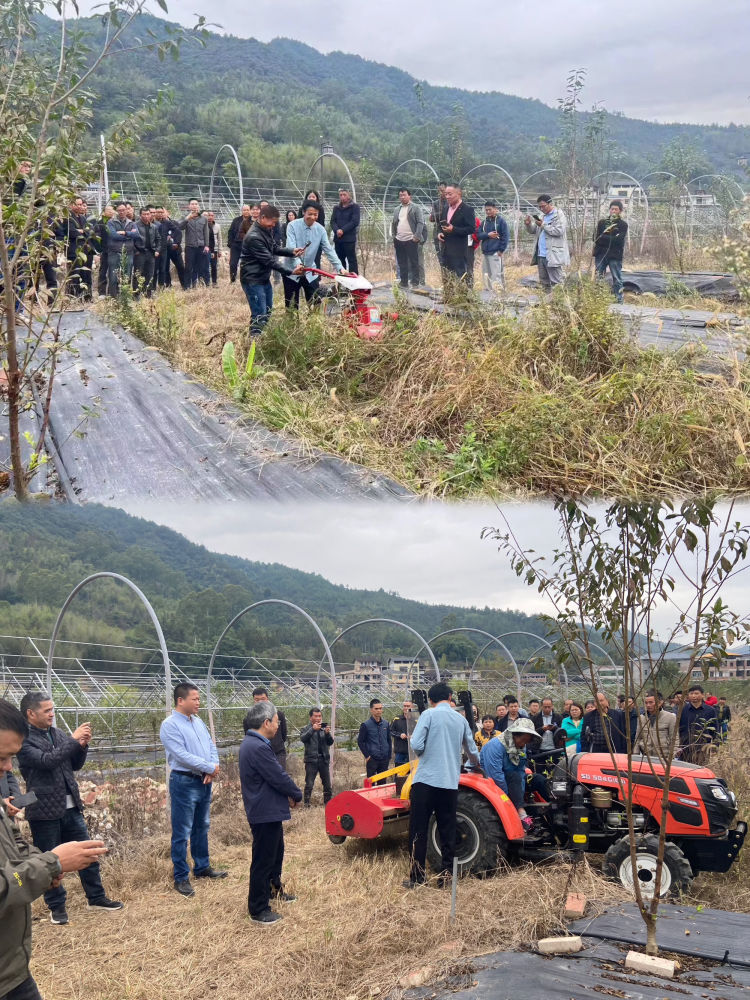 活动现场,永泰县大仓家庭农场负责人毛有仓同志介绍李果标准化种植基地建设情况,重点讲解李树“Y”型栽培技术、水肥一体化技术、应用有机液态肥技术等。现场演示多功能割草机、施肥机、喷雾机等新农机应用技术,让果农亲身感受农业机械在果树生产中的应用效果和前景。