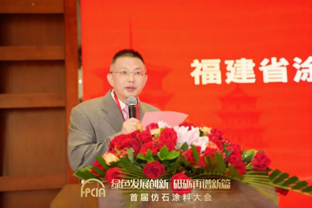 11月4日,由福建省涂料工业协会主办、以“绿色发展创新、砥砺再普新篇”为主题的中国首届“仿石涂料大会”暨福建省涂料工业协会第九届换届大会于泉州隆重召开,中国涂料工业协刘普军会长、孙莲英名誉会长出席大会并致辞,地方涂料协会领导、涂料上下游企业及媒体300余人参会。