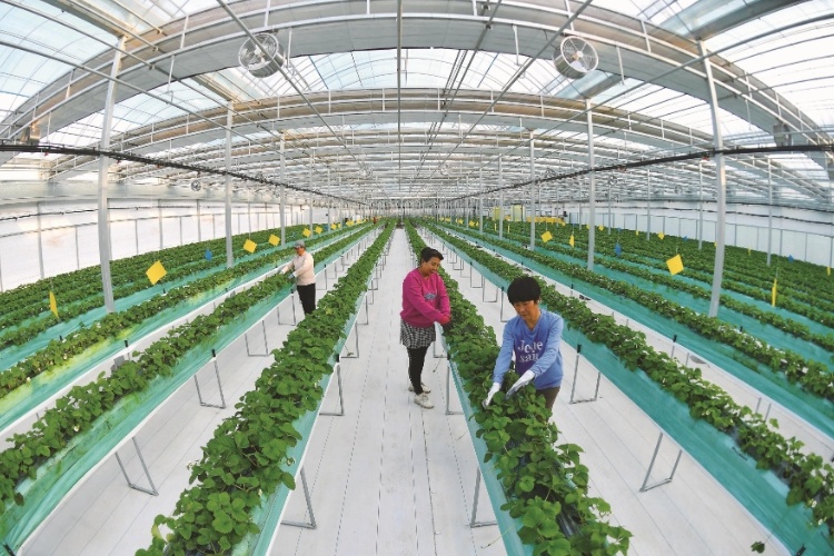 银川市贺兰县习岗镇新平村农业设施园区的大棚内温暖湿润,草莓花挂满枝头,辣椒、黄瓜等蔬菜静待采摘,到处弥漫着泥土和蔬果的清香。农户们正在忙着采摘、打理各类蔬果。