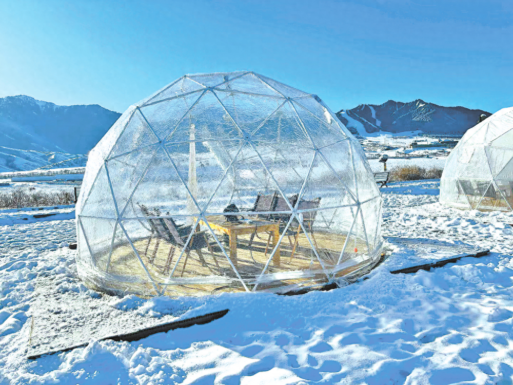 乌鲁木齐县水西沟镇野路子露营基地引进了适合冬日露营的透明泡泡屋。(受访者供图)