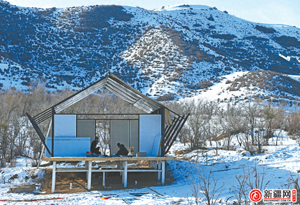 11月17日,米东区铁厂沟镇天山村星空露营基地的中央厨房进入收尾阶段。(全媒体记者陈岩摄)