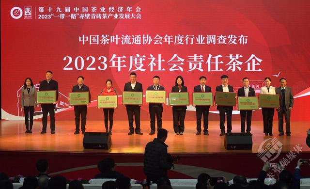 会上,“2023年度综合实力引领茶企”和“2023年度社会责任茶企”获得授牌,吴培元等10位“国茶人物·制茶大师”获颁证书。活动现场,中国茶叶流通协会还授予赤壁市“青砖茶原产地”称号。