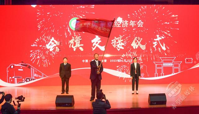 会议举行会旗交接仪式,第二十届中国茶叶经济年会将于2024年在浙江绍兴新昌举办。