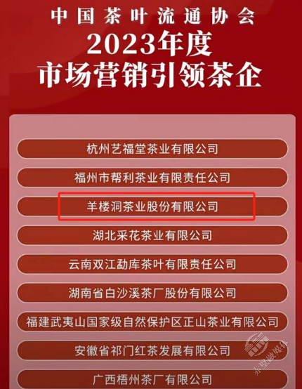 11月18日,第十九届中国茶业经济年会、2023“一带一路”赤壁青砖茶产业发展大会在湖北赤壁开幕。开幕式上,中国茶叶流通协会公布2023年度茶叶行业调查,其中湖北青砖茶产业发展集团旗下羊楼洞茶业股份有限公司获“2023年度重点茶企““市场营销引领茶企”荣誉,羊楼洞茶业股份有限公司龙雁华获“国茶人物·制茶大师”荣誉称号。