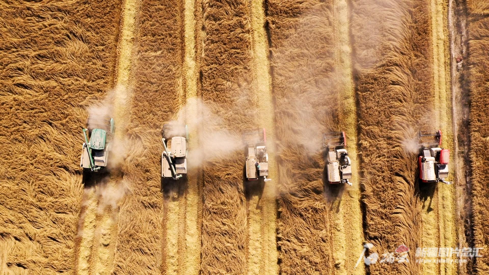 今年10月,和田市拉斯奎镇4400亩盐碱地水稻收获场景。张淑华摄