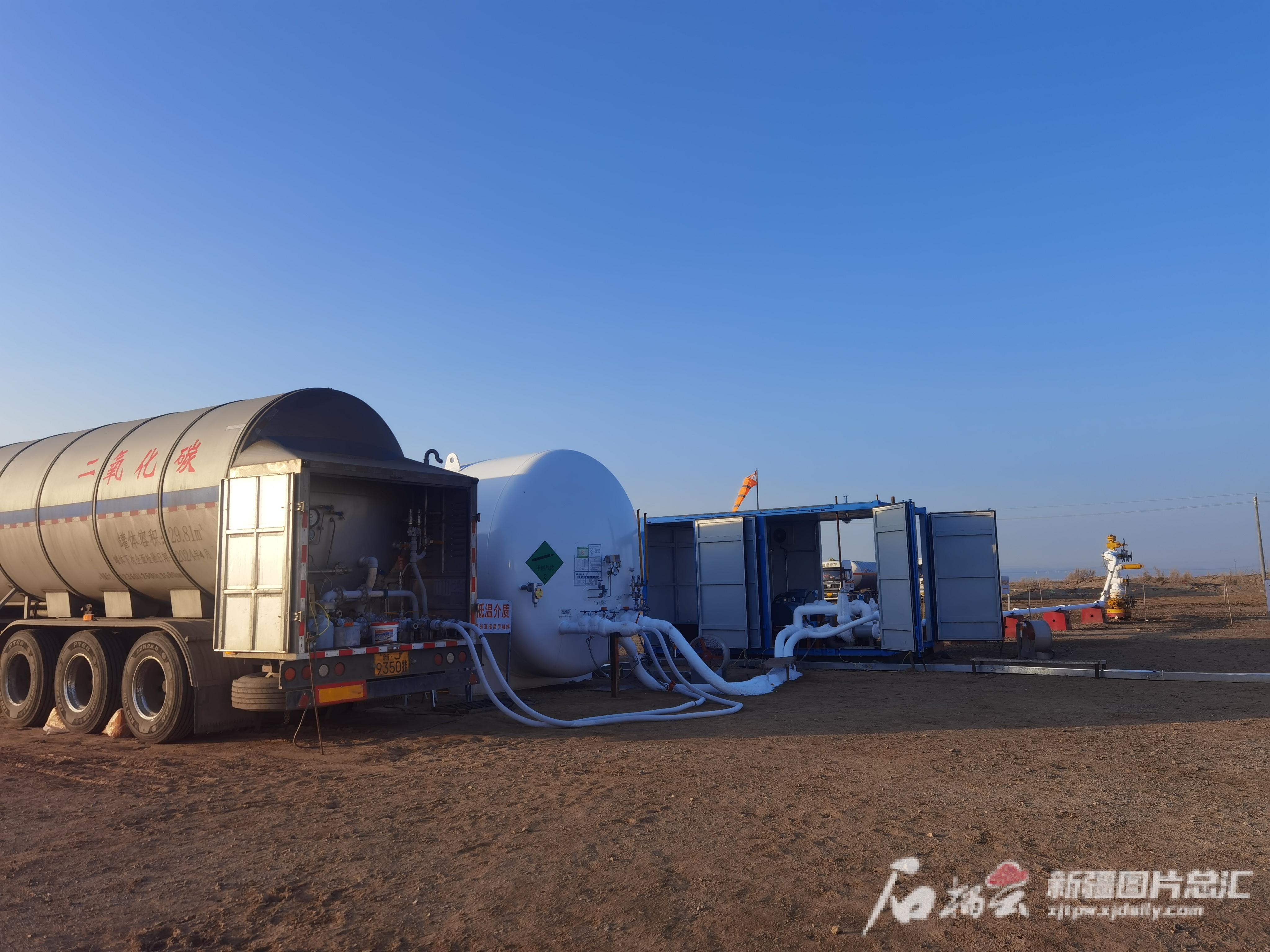 11月19日,在玛湖油田玛1井区,正实施二氧化碳注气作业。石榴云/新疆日报记者 于江艳 摄