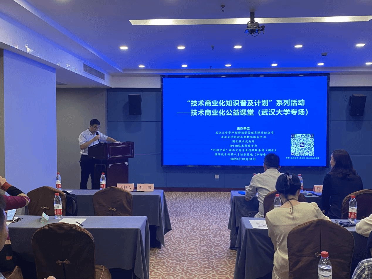 技术商业化公益课堂旨在为进一步落实《国务院办公厅关于完善科技成果评价机制的指导意见》《科技部 教育部印发〈关于进一步推进高等学校专业化技术转移机构建设发展的实施意见〉的通知》等文件精神,更好服务科技成果转化项目开启投融资之门、启动商业化之路,帮助科技成果转化团队拓宽思路、凝聚目标,大力提升科技成果转化潜力与确定性。本次活动由武汉大学资产经营投资管理有限责任公司、武汉大学科技成果转化服务中心会同湖北技术交易所、IPTTO技术转移平台、及“科创中国”技术交易专业科技服务团(湖北)共同举办。来自学校各院系、重点实验室以及资产公司和珞珈创意园的教师团队及技术经纪人代表参加,本次讲座现场气氛热烈,互动积极。