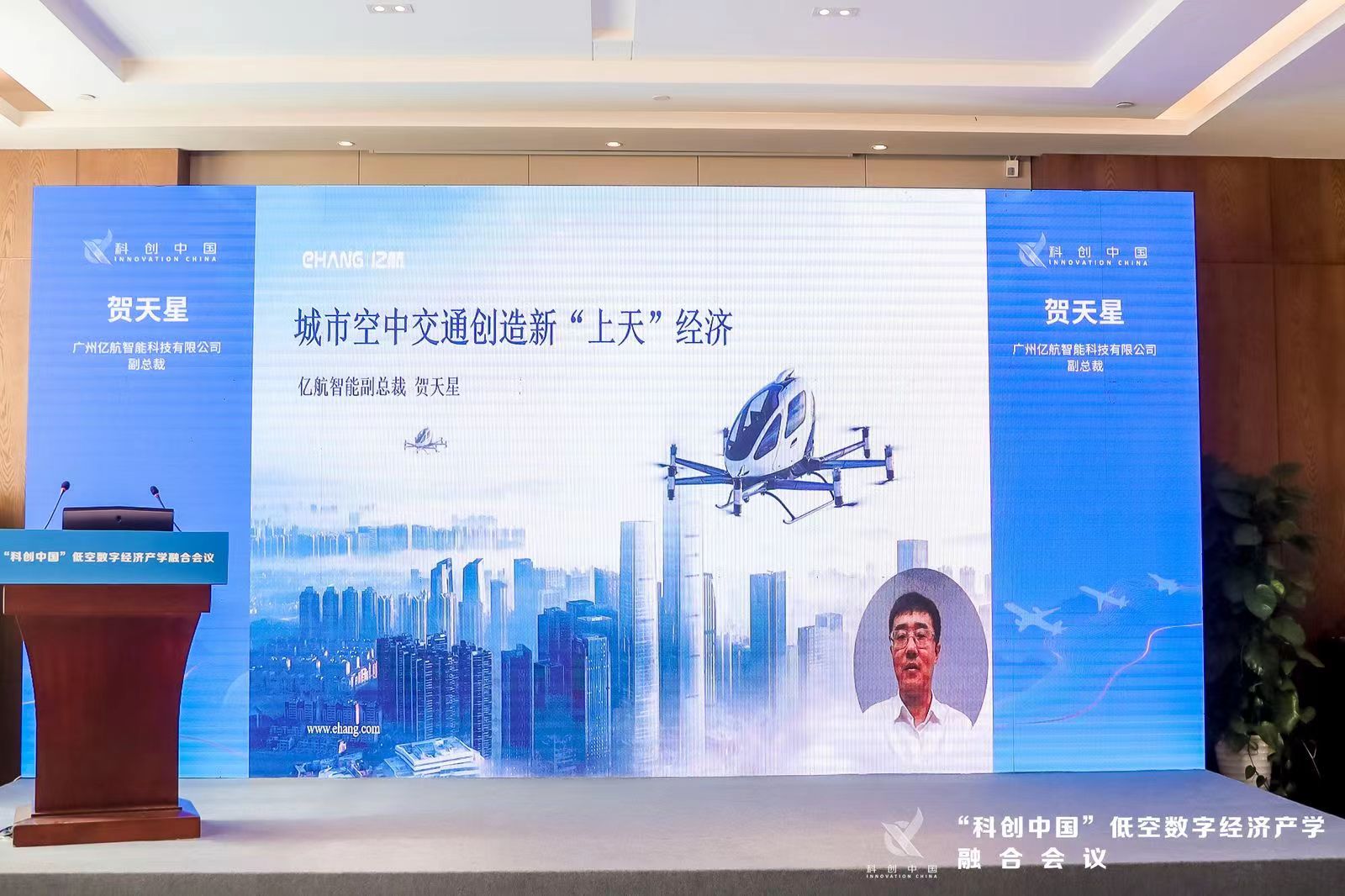 广州亿航智能科技有限公司副总裁贺天星作了题目为《城市空中交通创造新”上天“经济》的专题视频演讲
