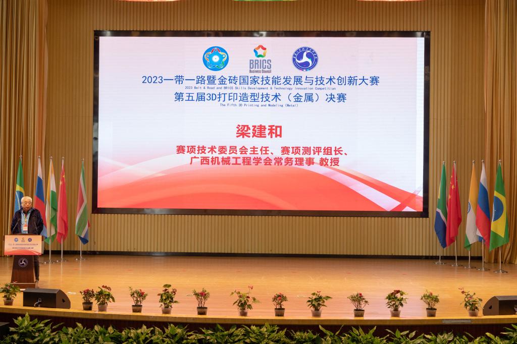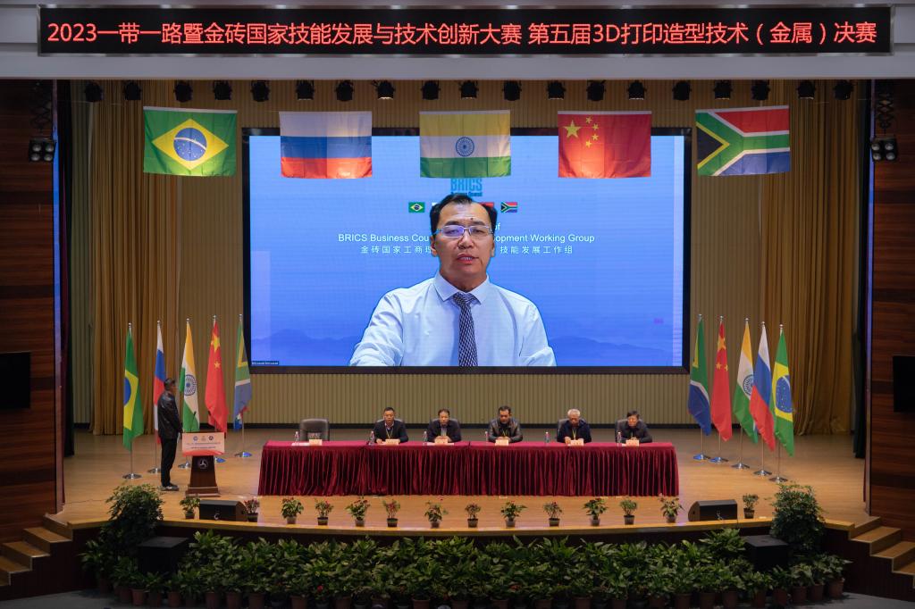 2023年11月15日,2023一带一路暨金砖国家技能发展与技术创新大赛第五届3D打印造型技术(金属)决赛开幕式在襄阳汽车职业技术学院科学会堂举行。