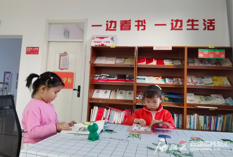 在塔城市阿西尔达斡尔族乡库尔托别村党群活动中心,孩子们正在看图书。彭琪 摄