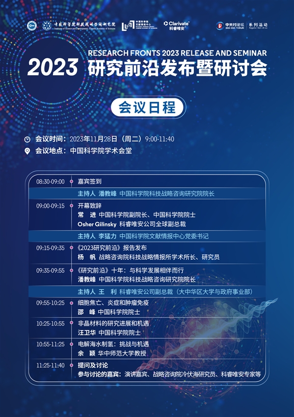 基础研究是科技创新的源头,加强基础研究是应对国际科技竞争、实现高水平科技自立自强的迫切要求。研判科技创新发展形势和竞争态势,对发现科技发展新领域新赛道,加快世界科技强国建设具有重要意义。为揭示中国基础研究现状和未来突破方向,把握世界科技发展大势,中国科学院与科睿唯安公司(原汤森路透)面向全球发布年度《研究前沿》,今年正好是《研究前沿》发布10周年。