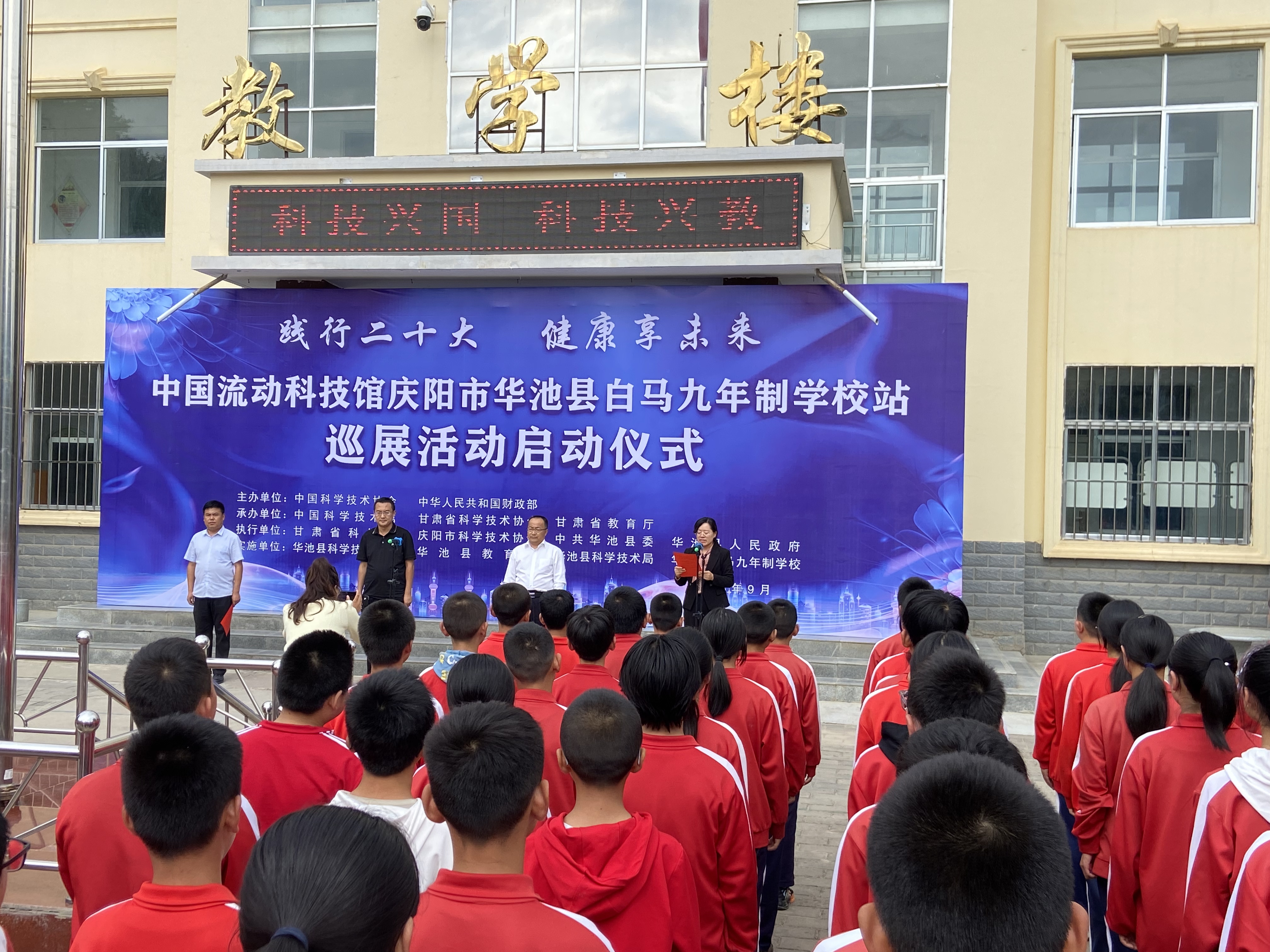 9月18日,以“践行二十大·健康享未来”为主题的“中国流动科技馆”巡展活动走进华池县。启动仪式在白马九年制学校隆重举行。县教育局、科技局负责同志,白马九年制学校师生代表及县科协全体干部共计200余人参加了启动仪式。
