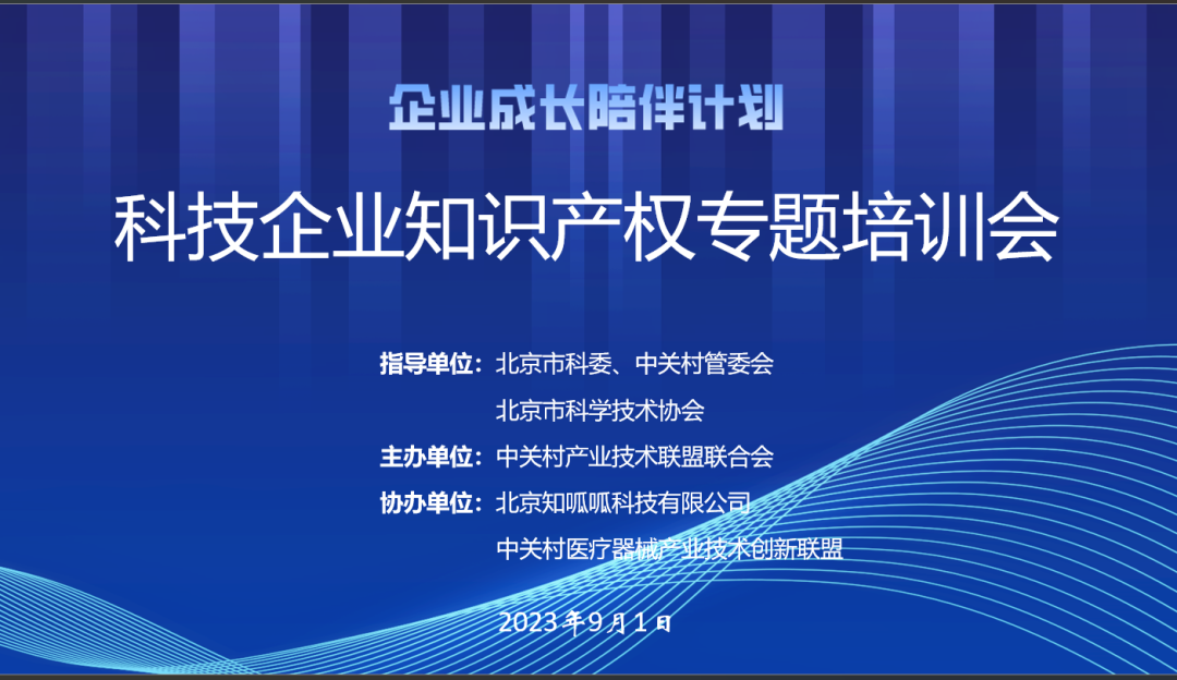 9月1日,由中关村产业技术联盟联合会主办的“企业成长陪伴计划”活动之一——“科技企业知识产权专题培训会”线上成功举办。活动邀请到知呱呱研究院副院长丁彦峰专题授课。来自全国各地科技企业、科技社团、科技服务机构等单位代表400余人次线上参加了本次培训会。