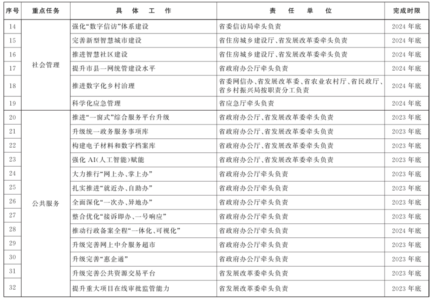 推进新型智慧公共能力建设。建设统一人工智能平台,实现“平台+算法+应用引擎”技术体系化,赋能政务多端应用。优化统一消息推送平台,赋能政务服务办理、社会管理应急等各场景。完善政务区块链基础平台,提供数据存证、数据溯源、多方协同等服务,赋能数字政府应用系统建设。完善政务空间地理信息平台,健全全省地理时空数据规范,支撑社会综合治理、全域态势感知、辅助决策分析等功能开发。建设省级隐私计算平台,在医疗健康、金融银行、国家安全等领域赋能个性化服务场景。
