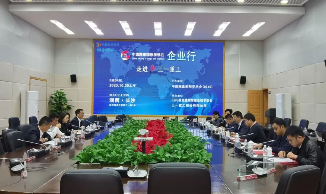 本次活动由中国图象图形学学会(CSIG)主办,CSIG视觉感知智能系统专委会和三一集团联合承办。CSIG视觉感知智能系统专委会秘书长钱徽教授、常务委员唐琎教授、常务委员吴涛教授、副秘书长徐婉莹副教授,张超、赵涵斌等图像图形学领域的10余名专家教授,以及三一集团副总经理胡大成、三一集团湖南省地面无人中心科研处处长熊珺、研究院副院长彭清祥、工艺院院长于静、控制所副所长胡文彪、科研处副处长邹鲁昌出席活动。中国图象图形学学会产学研专员崔金凯全程参与。