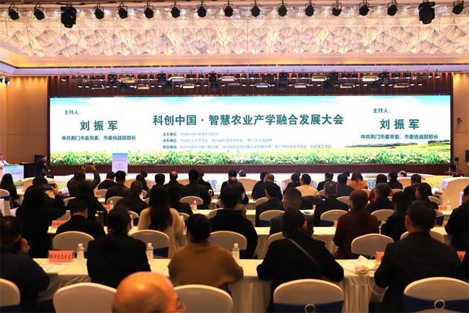 本刊讯11月23日,由中国科协科学技术创新部主办,中国国土经济学会、湖北省科学技术协会、荆门市人民政府联合承办,以智慧农业赋能乡村振兴转型升级为主题的科创中国·智慧农业产学融合发展大会在湖北省荆门市召开。科技部原副部长、国际欧亚科学院院士刘燕华,国际欧亚科学院院士、农业农村部规划设计研究院原院长朱明,中国国土经济学会主席团主席、科创中国·乡村振兴联合体主席团常务副主席兼秘书长柳忠勤,荆门市委副书记、市长陈家伟,湖北省科协副主席、党组书记周德文,以及湖北省科协乡村振兴学会联合体、荆楚理工学院,荆门市人民政府有关部门和单位负责人、荆门各县市区分管农业领导,荆门市科协、农业农村、招商等部门负责人,智慧农业相关企业负责人共计200多人出席线下会议。