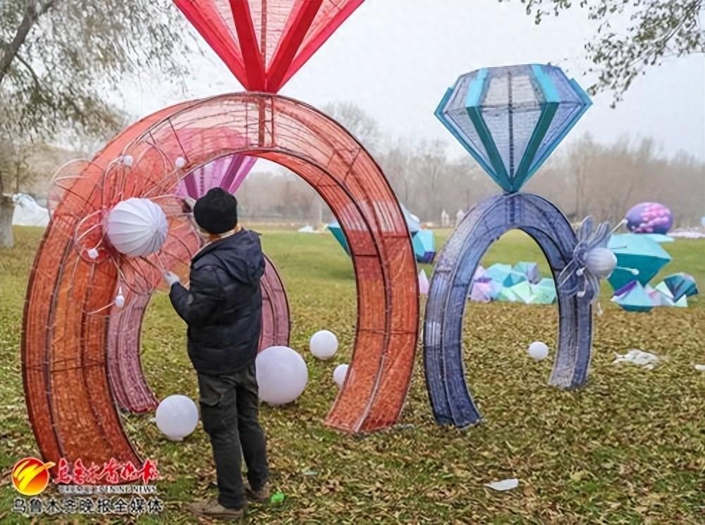 工作人员在组装花灯。记者米热扎提·木塔力甫摄