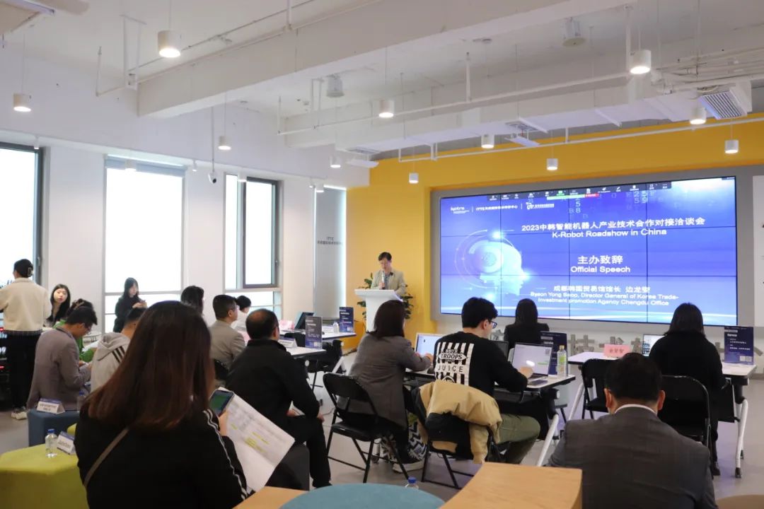 11月23日,由大韩贸易投资振兴公社成都代表处、天府国际技术转移中心、韩国机器人产业振兴院共同主办的“创业天府·菁蓉创享会--2023中韩智能机器人产业技术合作对接洽谈会”在天府国际技术转移中心路演厅顺利举办。潜行创新(成都)机器人科技有限公司、成都睿乐达机器人科技有限公司、纳爱斯成都有限责任公司、成都市凯瑞医疗科技有限公司、重庆众颖熙科技有限公司、成都科技创新投资集团有限公司等24家来自成都、重庆的医疗、机器人、传统制造企业在线上和线下分别与7家韩国机器人技术企业展开了近40场1V1对接洽谈。