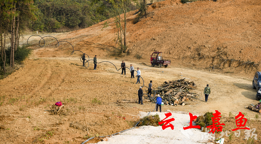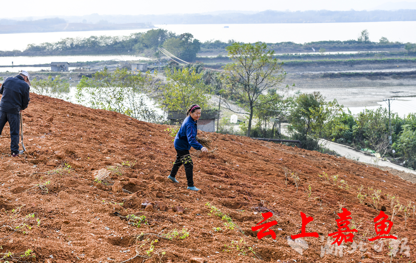 11月25日,嘉鱼县高铁岭镇广济堂村中药材基地人头攒动,农户们忙着翻土、栽金银花苗、浇水、覆土,架设浇水的电缆,到处是一片繁忙的景象。