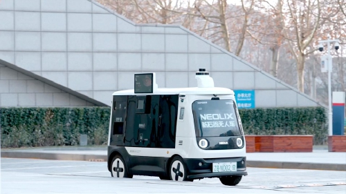 在展会现场,一眼就能看到平日奔走在北京经开区路面上的新石器无人车。此时的它正安静乖巧地停在广场一隅等观众前来合影拍照,一袭红衣显得格外精神。