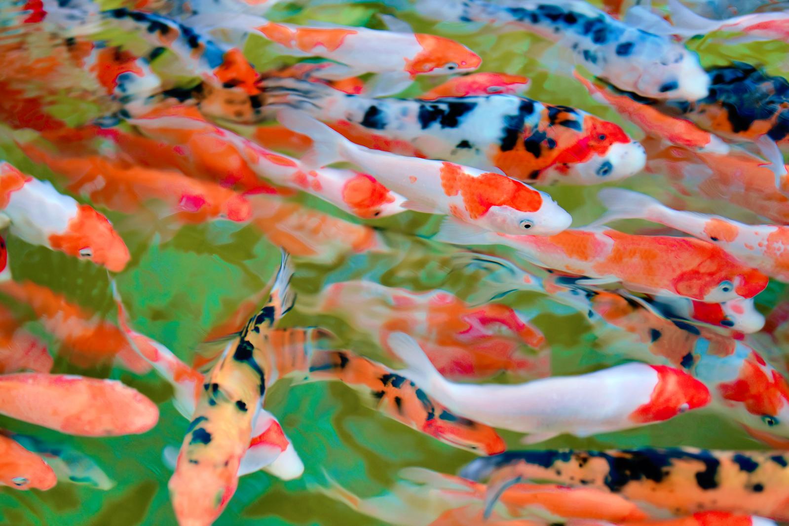 色彩鲜艳的锦鲤在水中畅游。