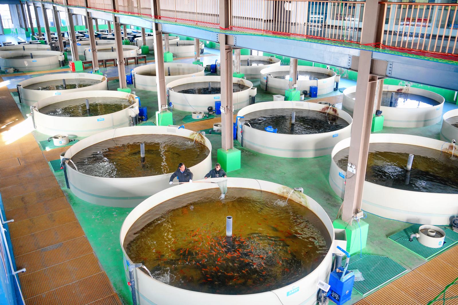 12月6日,正值隆冬,户外天寒地冻,但走进宁夏银川科海生物技术有限公司宁夏黄河经济鱼类水产种质资源场内,一股湿热的暖意扑面而来。这里有序分布着十八座巨大的圆形循环水养殖池,只见循环流动的池水清澈见底,银川鲤鱼、薄荷草鱼、鳜鱼、鲟鱼等数十种鱼儿,正在池中一边畅游,一边吸着“鲜氧”。宁夏黄河经济鱼类水产种质资源场,建设于2021年,先后投资2620万元,依托宁夏贺兰县优良的水质条件,进行黄河鱼类的标准化繁殖、繁育、种质资源的保护。整个车间采用的是全程自动化控制、自动化处理,并通过物联网实时监控,实时观测,根据水温、溶氧、Ph值、氨氮亚盐等数据,及时作出调整,确保为鱼儿提供最适宜的生存空间。