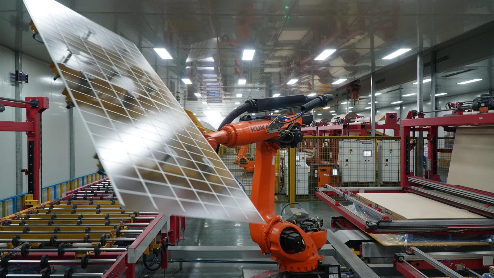 宁夏金晶科技有限公司光伏玻璃生产线。