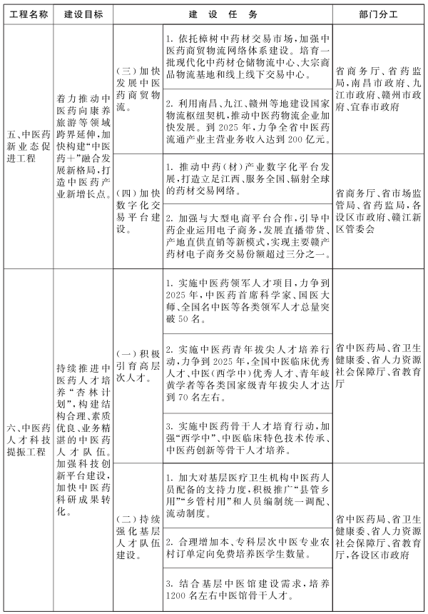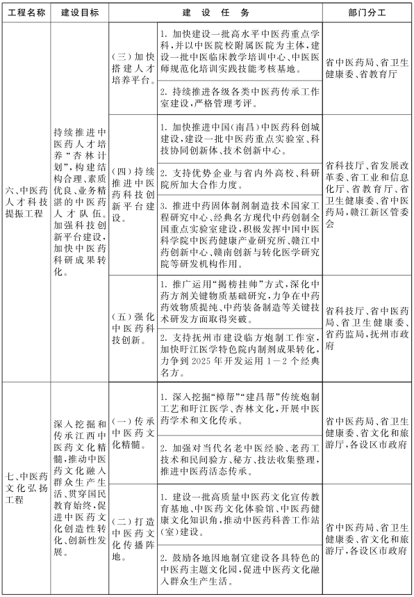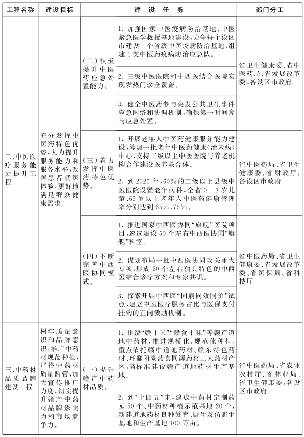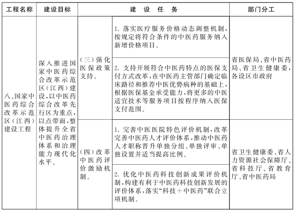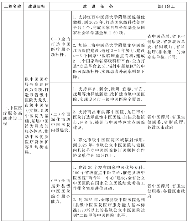 附件:《江西省推动中医药振兴发展重大工程实施方案》任务分解表
