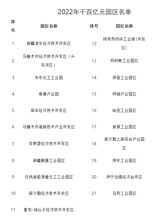 截至目前,新疆培育自治区级及以上园区84个(不含兵团),其中国家级21家、自治区级工业园区63家。